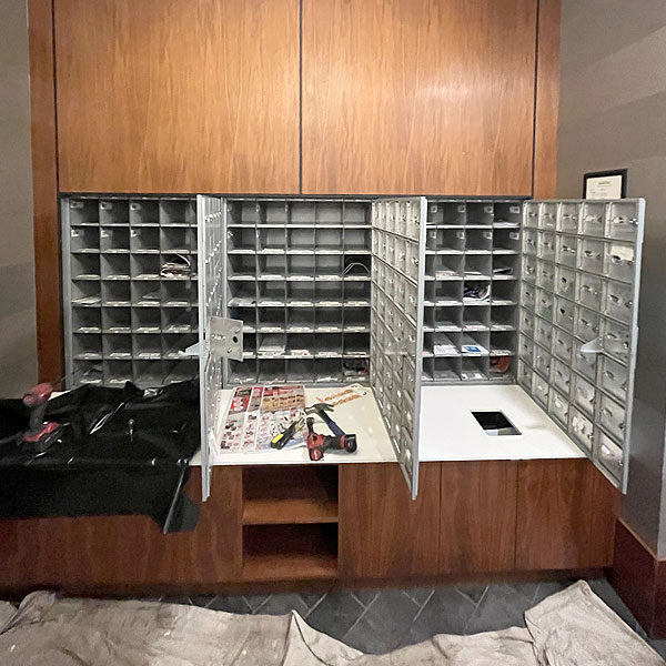 The goal of this retrofit project was to replace old top-loading mailboxes with a more secure style.
